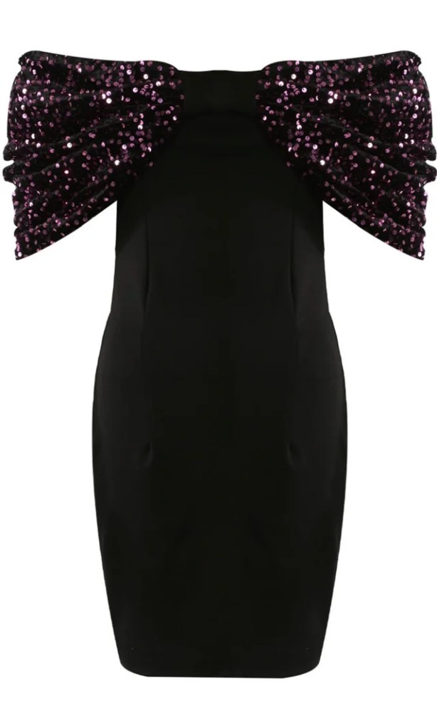 My Closet Looks: £39.00 Plum Sequin Bow Bardot Mini Dress